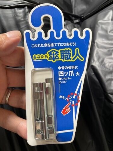 約2ヶ月前に買って、毎日のように使ってる晴雨兼用折り畳み傘。 a-sue.hatenablog.com昨日の朝、雨の中でふと見ると骨が1本垂れ下がってる。 え、もう壊れたの? と思ってよく見ると、ピアノ線(だよね?)が1本外れてた。 正常なのはこの状態。 どうやら無理…